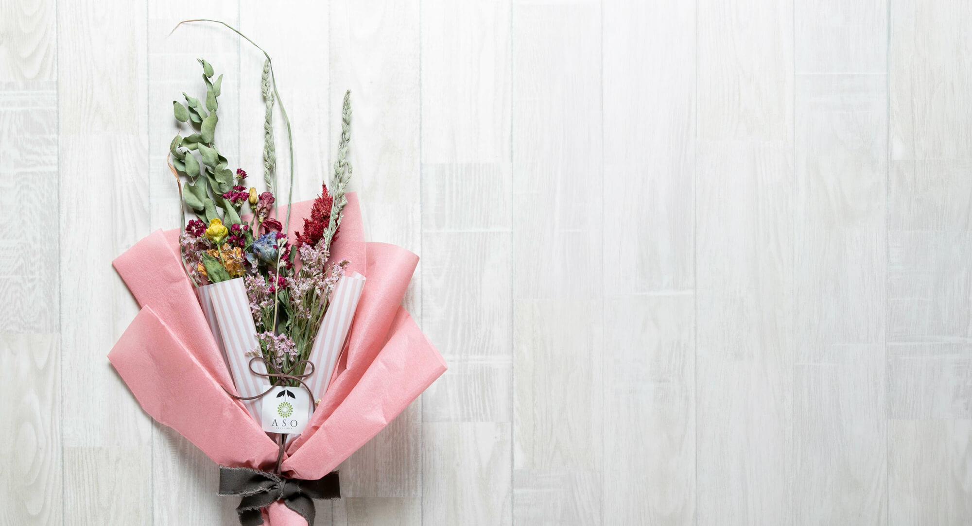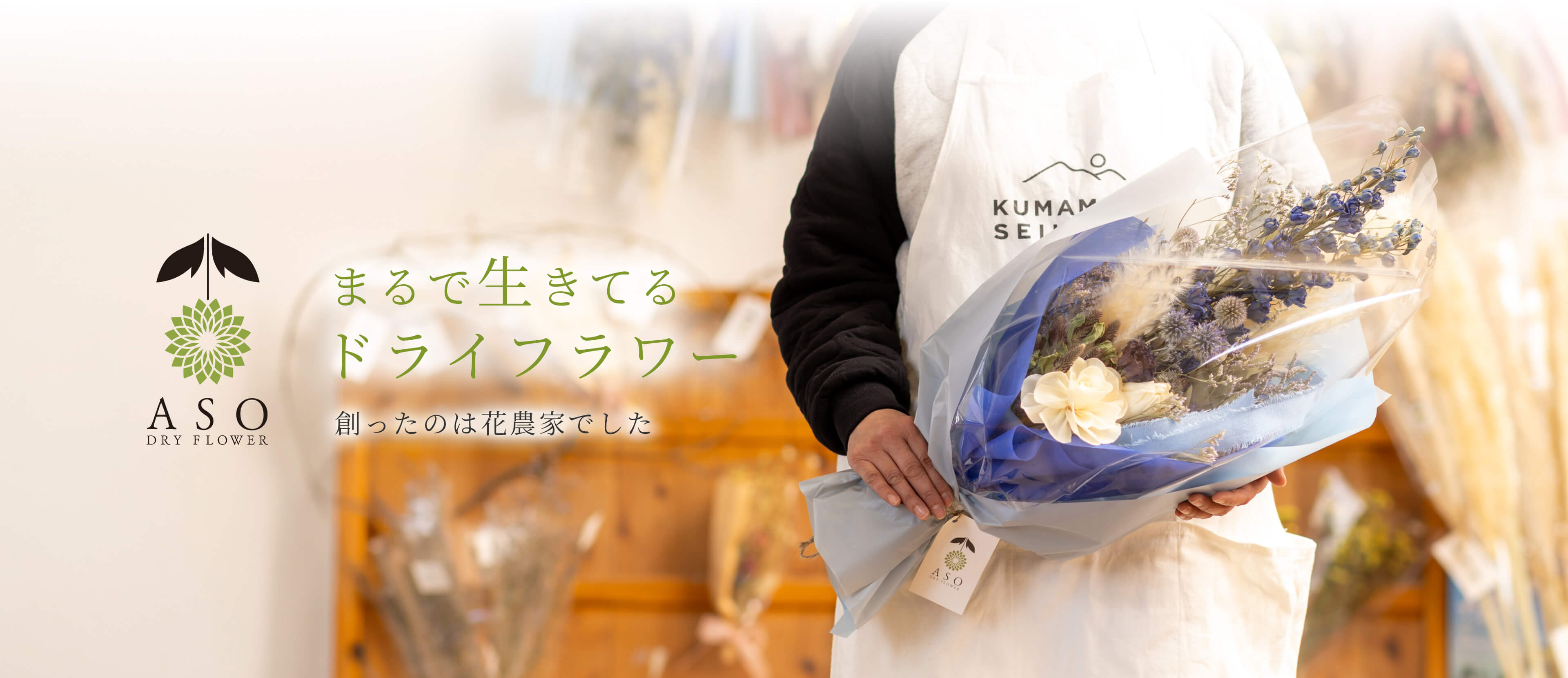 ASO DRY FLOWER(阿蘇ドライフラワー)は、阿蘇の自然の中で育てられた花を、ドライフラワーとして新たな形で届けるブランドです。